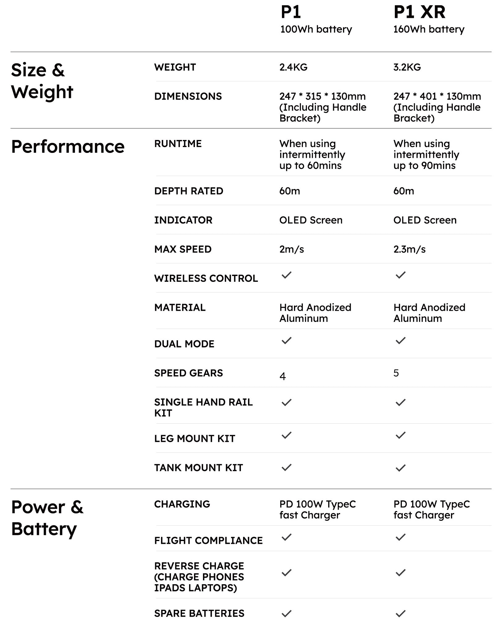 The P1 is available in two versions: